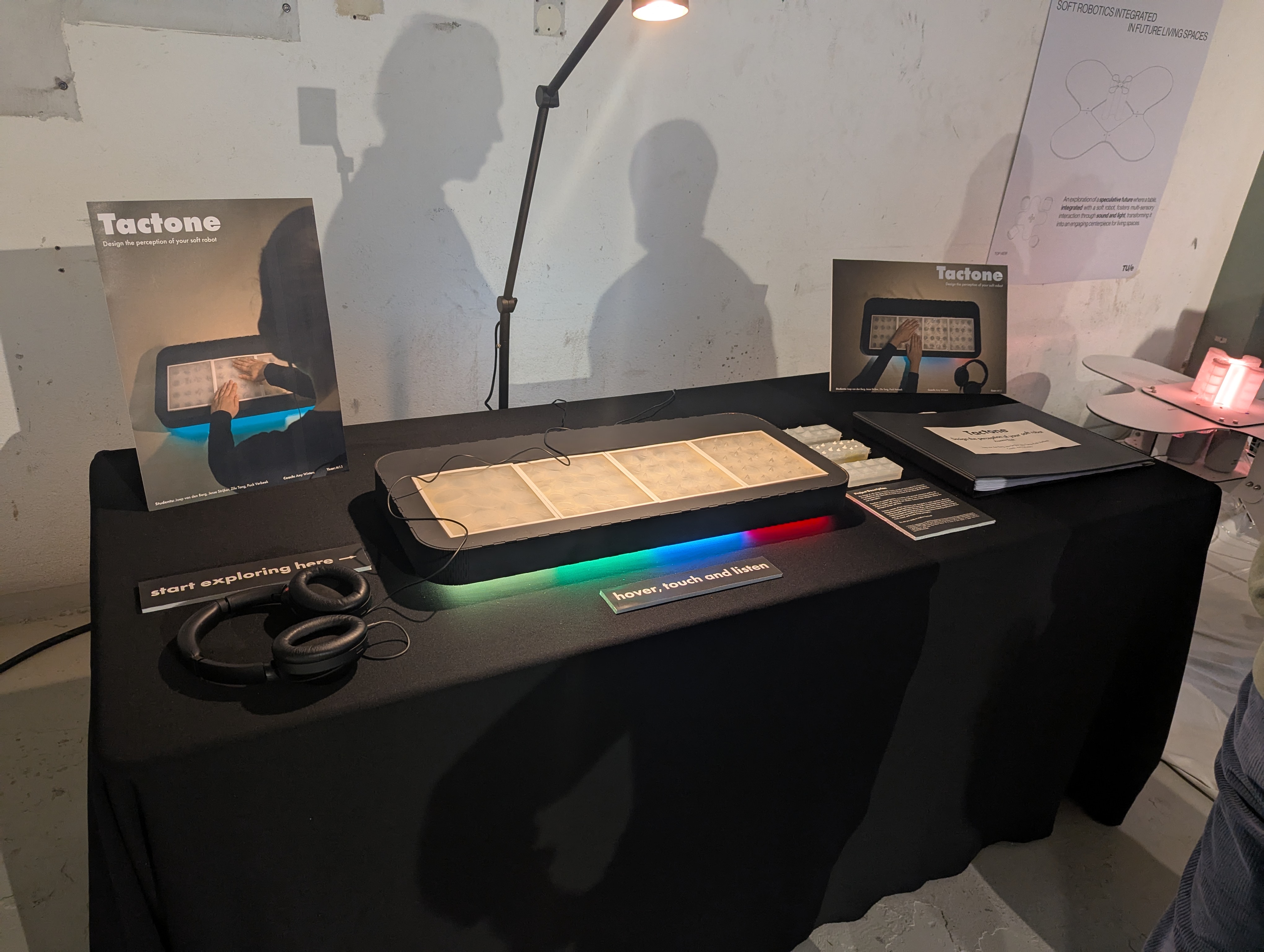 The design of soft robots is currently mainly aimed at functionality [1]. However, the aesthetics of soft robots play an important role, as they shape user perception and experience [2]. The looks, the touch and sound of soft robots all influence the user's perception. Therefore we created Tactone, a modular multi sensorial interactive pad for designers to interact with. Tactone is a perception tool, encouraging designers to explore haptics and sound of soft robotics. Tactone helps designers design the perception of their soft robot. Tactone consists of four interactive pads designed to evoke emotions, allowing designers to interpret each interaction personally. Using headphones, the designer touches the pads, feeling the silicone inflate against their hands while the audio transforms based on coverage and duration. Its modular design enables changing pads around to mix tactile and auditory experiences, fostering exploration of how touch, sound, and visuals shape perception. So, are you ready to explore Tactone?